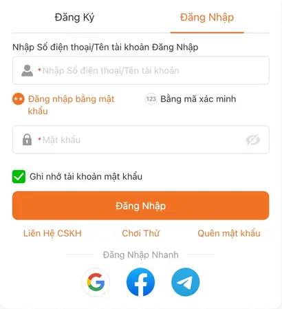 - Nhập tên đăng nhập và mật khẩu đã đăng ký.